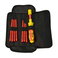 НАБОР ДИЭЛЕКТРИЧЕСКИХ ОТВЕРТОК СО СМЕННЫМИ ВСТАВКАМИ 7+1 В КОФРЕ, ДИНАМОМЕТРИЧЕСКАЯ РУКОЯТКА 1-5NM (арт.09350)