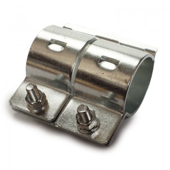 Муфта трубная ТР-4 применяется для соединения между собой стальных труб (25-28 мм), не имеющих резьбы, при помощи четырёх составных оцинкованных полуколец и четырех болтов, стягивающих полукольца.