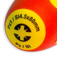 Отвертка Pz 1 / Sl 4.5x80 мм предназначена для завинчивания и отвинчивания крепёжных изделий с резьбой, в том числе под действующим напряжением до 1000V. Зауженный наконечник, Slim Tip. Двухцветная изоляция. VDE.