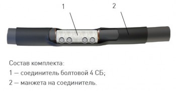 - Муфты комплектуются болтовыми соединителями 4 СБ (ГВКП) с алюминиевыми болтами, срывающимися при затяжке. Для улучшения электропроводящих свойств на контактные поверхности болтов нанесена токопроводящая мастика. Болтовые соединители предусмотрены для монтажа как на алюминиевую, так и на медную жилы.
