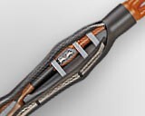 - В качестве армирующего элемента и дополнительной изоляции в конструкции муфты присутствует полимерная межфазная распорка. Межфазный герметик-заполнитель обеспечивает полную герметизацию муфты